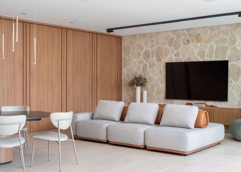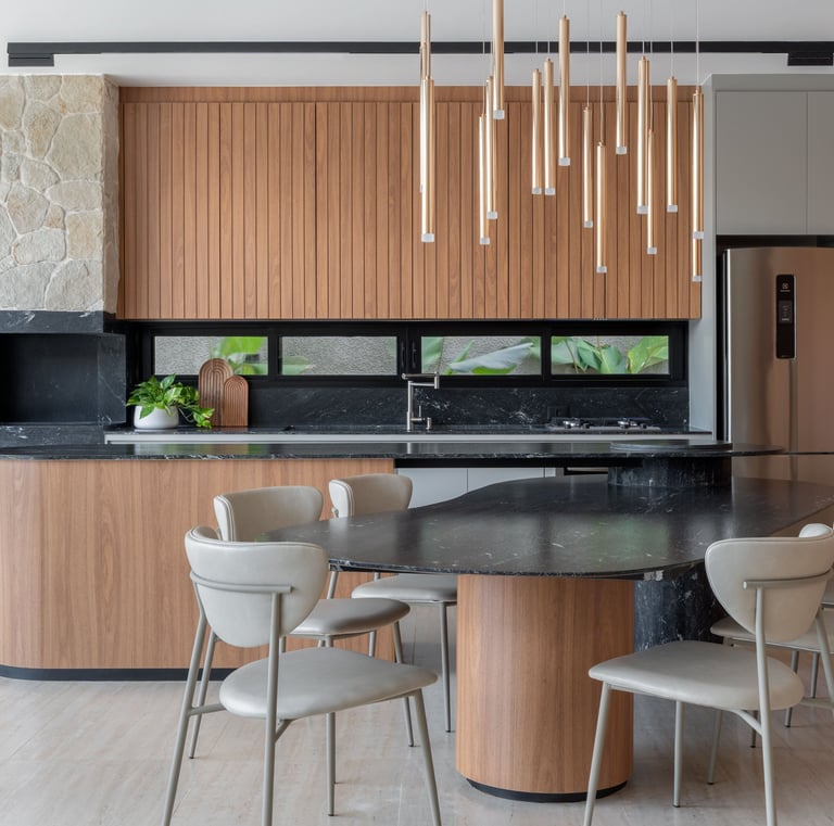 Com um enfoque completo, desenvolvemos tanto a arquitetura quanto o design de interiores, garantindo que cada detalhe construtivo reflita a personalidade e as necessidades dos clientes, criando lares únicos e funcionais.